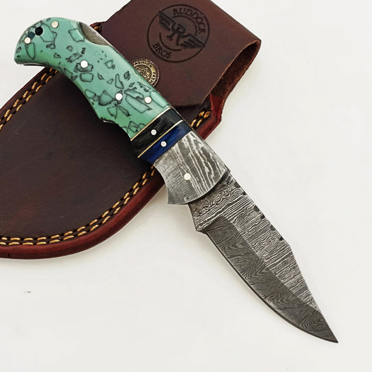 Blueberry Glaze Folding Knife - Damascus Steel