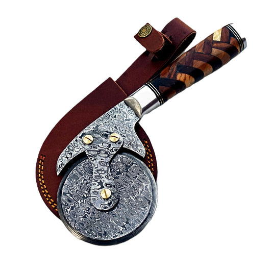 Basketweave Pizza Cutter - Hardwood - Damascus Steel