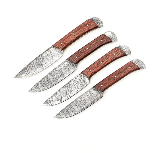 Rosewood Steak Knife 4 Piece Set - Damascus Steel - 9"