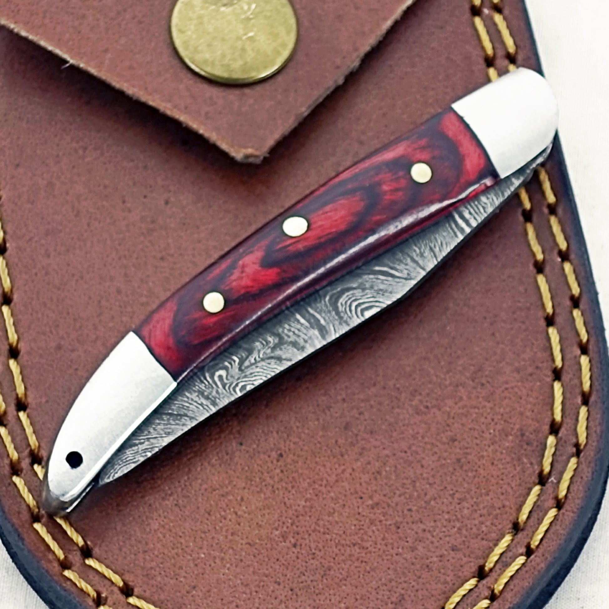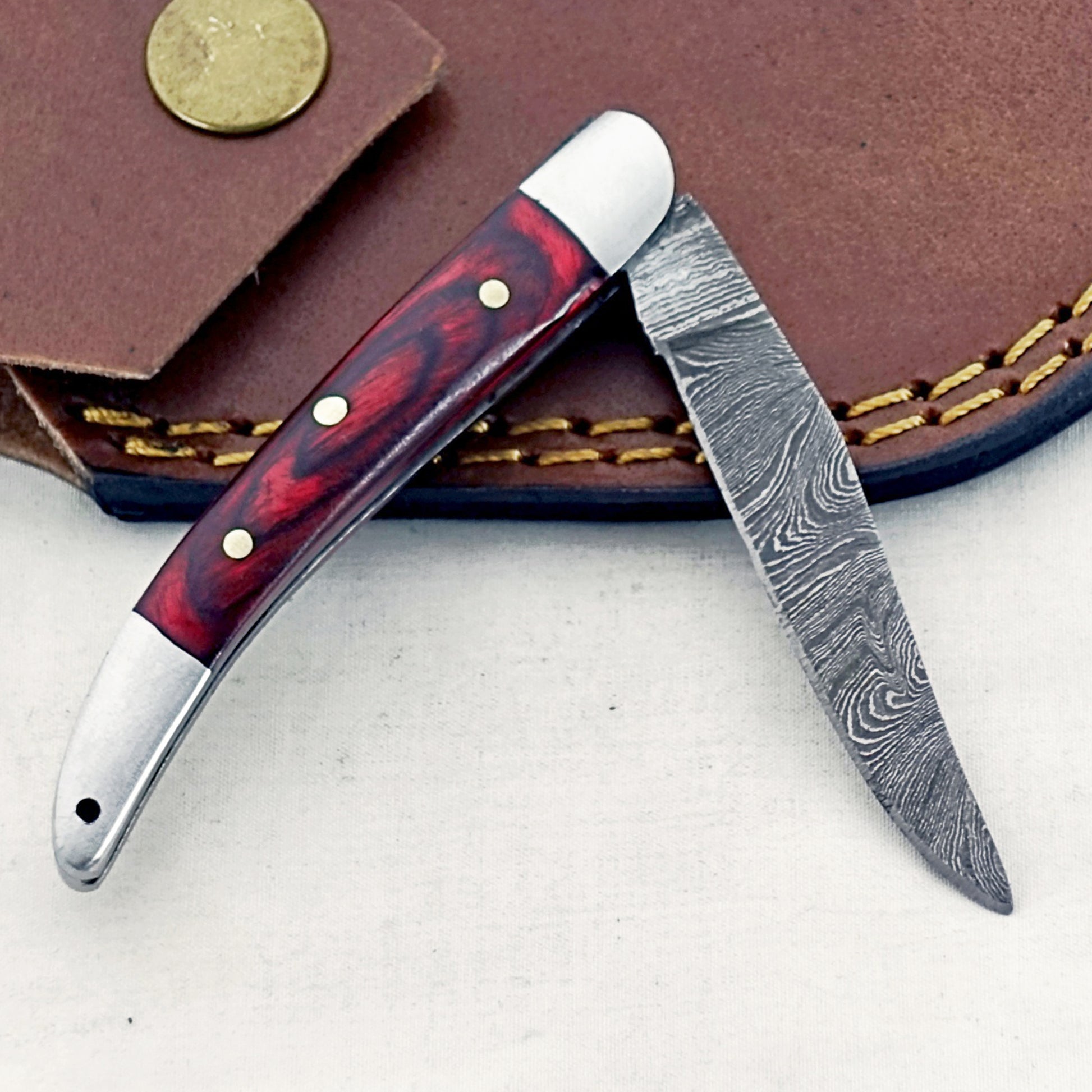 Mahogany Slim - Folding Pocket Knife - Damascus Steel